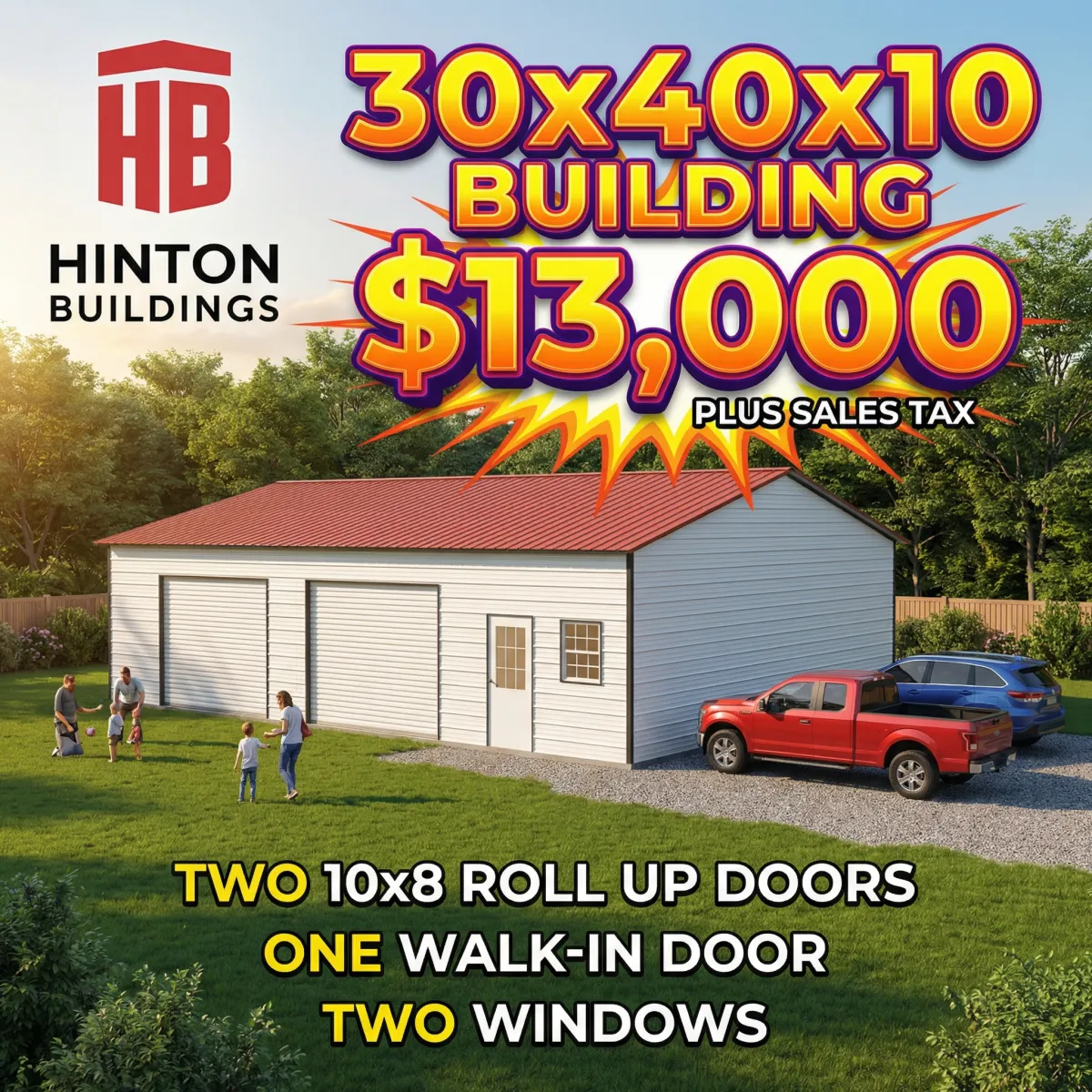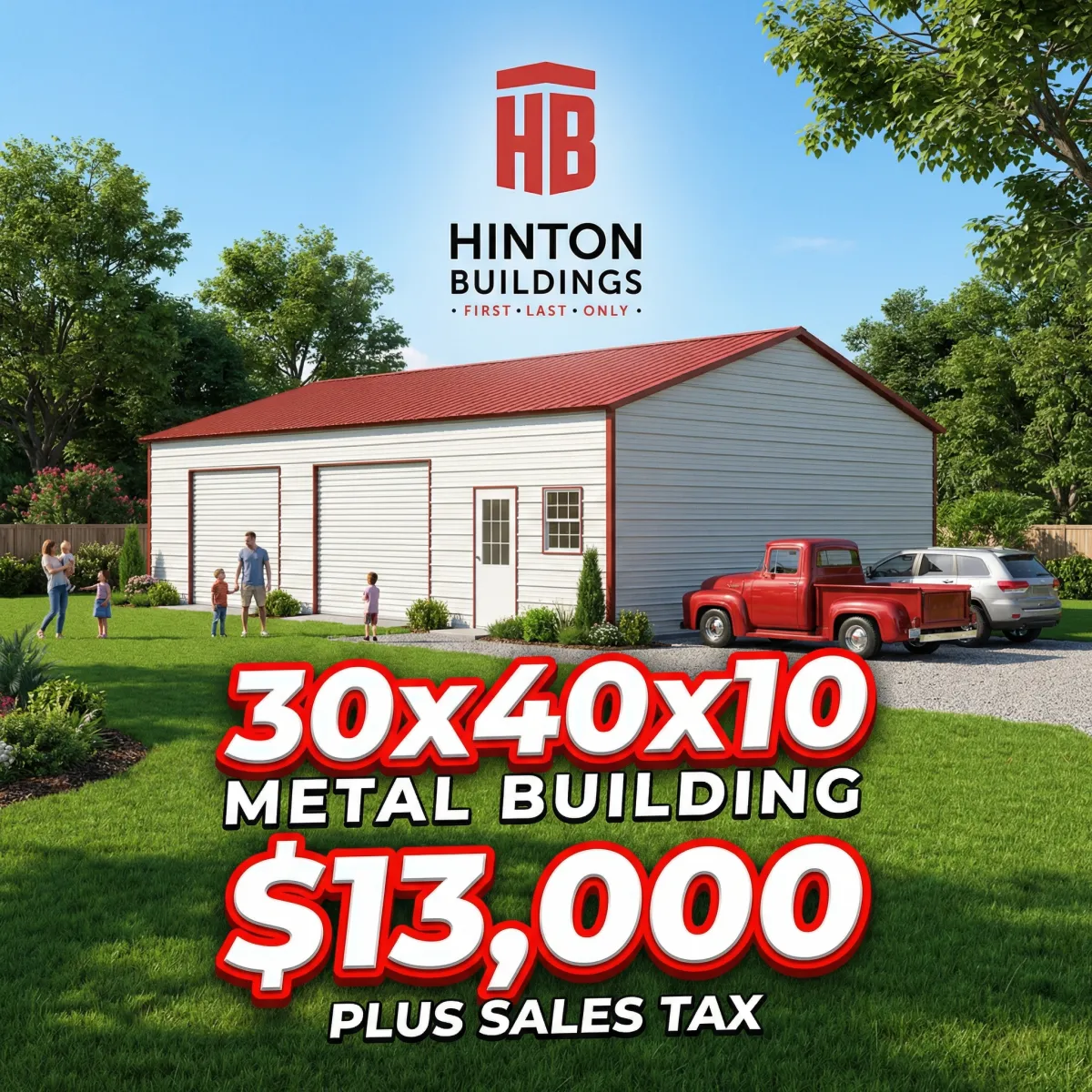 Hinton Buildings is your local home services partner for metal garages. Get a clear, itemized quote, a single point of contact, and a project that’s built to last.